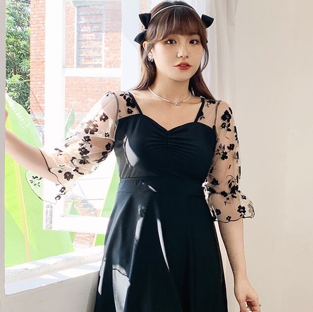 水着 スイムウェア 体系カバー水着 ワンピース 体系カバー 長袖 レース 刺繍 チュール フリル 水陸両用 かわいい 大人可愛い おしゃれ お洒落 主役級 存在感 女っぽ ラブリー キュート ガーリー 花柄 小花柄 フラワー 10代 20代 30代 40代 50代 60代 レディース 女性用 ママ マタニティ ミセス プレゼント ギフト夏 海 ビーチ プール 旅行 体系カバー サイズ XL 2XL 3XL 4XL 5XL 大きいサイズ 大きい 大きめ ビッグサイズ ぽっちゃり 色展開 黒 ブラック | Bonny Me
