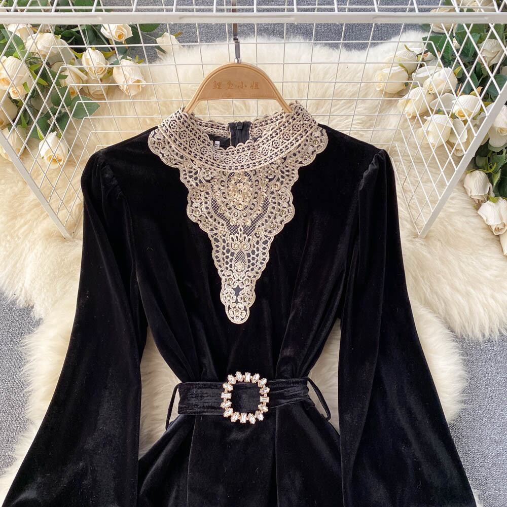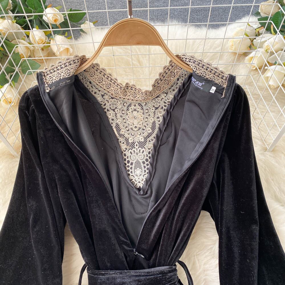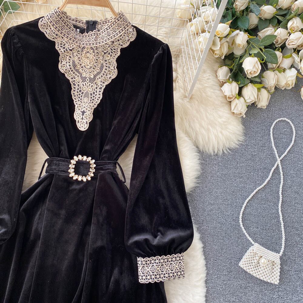 ワンピース デート ミモレ ミモレ丈 袖あり 長袖 レース かわいい 大人可愛い きれいめ シンプル カジュアル 大人 上品 おしゃれ お洒落 主役級 存在感 春 秋 冬 10代 20代 30代 レディース 女性用 OL 学生 デート お出かけ 公園デビュー 女子会 休日 イベント 旅行 着回し 普段使い ファッション コーデ 楽ちん モテ トレンド 流行 インスタ映え M L XL 2XL 黒 ブラック | Bonny Me