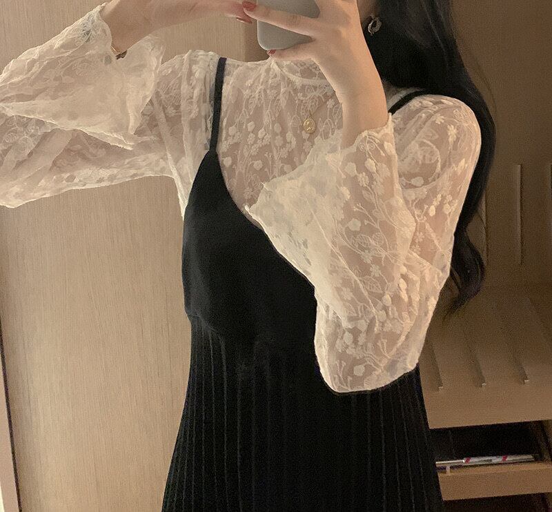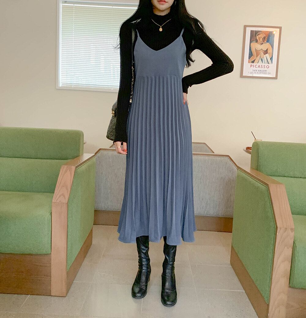 フェミニンなプリーツスカートのキャミワンピース。