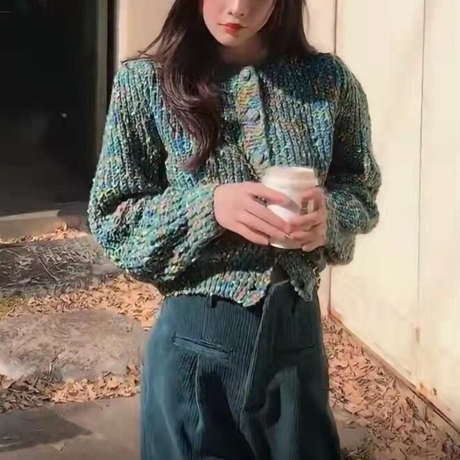 トップス ニット セーター カーディガン もこもこ 手編み風 暖かい 羽織物 リブ編み ショート丈 ラウンドネック ボタン 女らしさ 新作 春 長袖 ストレートタイプ ショート丈 カジュアル おしゃれ ゆったり 着やすい ラフ 好印象 大人女子 10代 20代 30代 シック 通勤 通学 学生 OL オフィスコーデ モテコーデ スタイルUP 大人女子 オシャレ 細見え スマート見え キレイ見え 足長効果 スッキリ見え 体型カバー 華奢見え ヤセ見え サマ見え こなれ感 S M L グリーン | Bonny Me