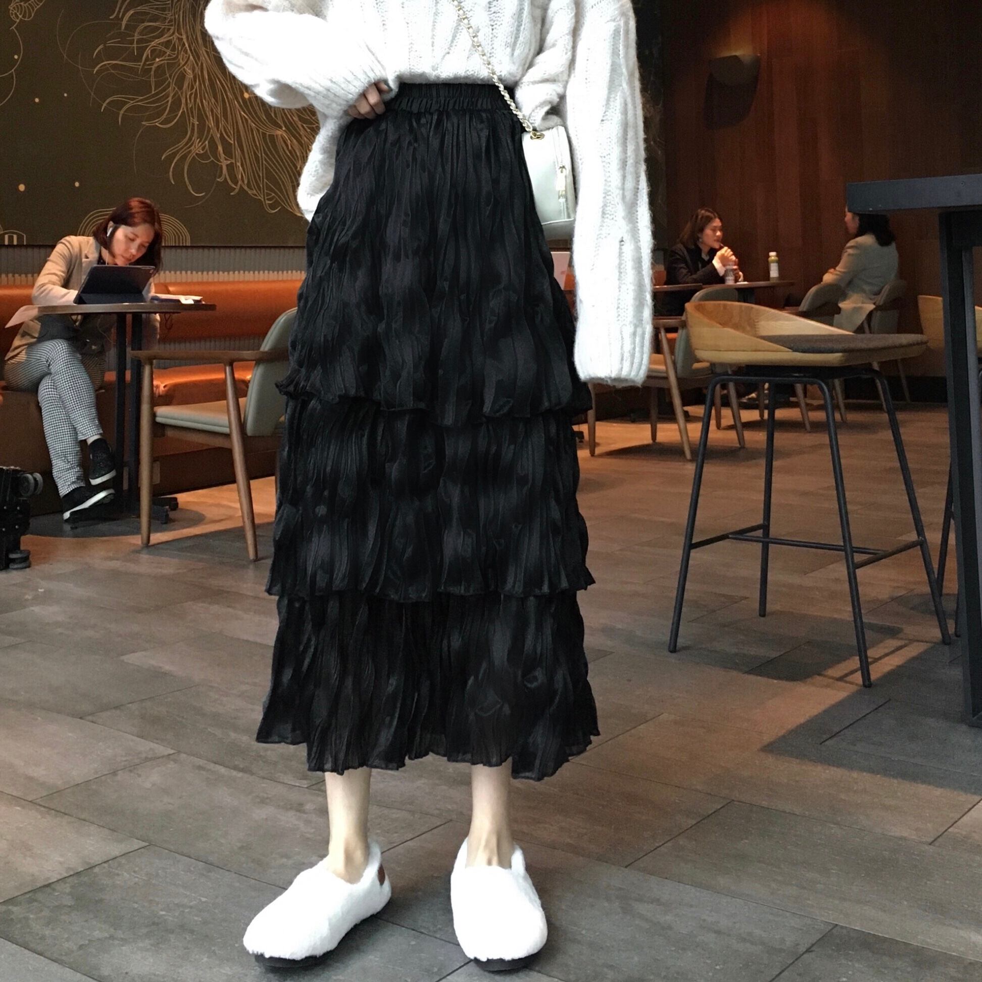 シワ加工クシュクシュが可愛いティアードロングスカート。