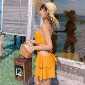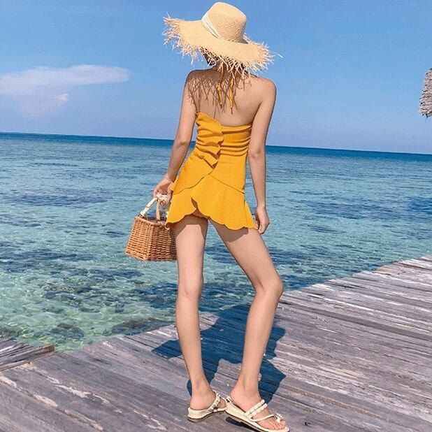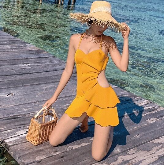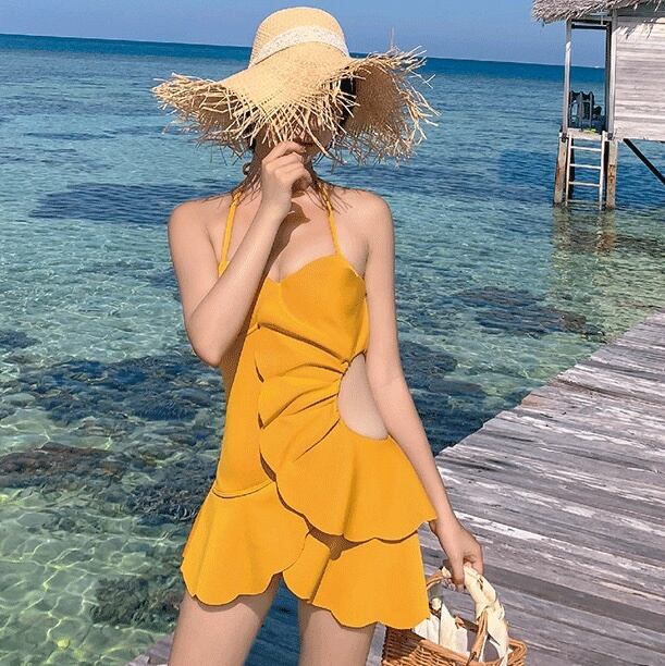 水着 スイムウェア ワンピース水着 体系カバー水着 ワンピース ホルターネック フリル バックシャン バックコンシャス かわいい 大人可愛い きれいめ 華やか 大人 大人っぽい おしゃれ お洒落 レトロ 主役級 存在感 女っぽ ラブリー キュート ガーリー スタイリッシュ かっこいい 無地 10代 20代 30代 40代 50代 60代 レディース 女性用 ママ 夏 海 ビーチ プール リゾート 旅行 体系カバー 美スタイル サイズ M L XL 小さいサイズ 大きいサイズ 色展開 黄色 イエロー | Bonny Me