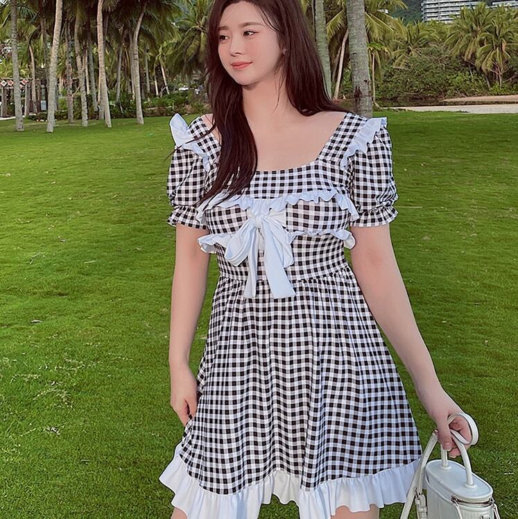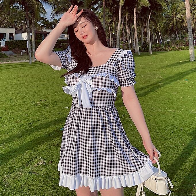 水着 スイムウェア ワンピース水着 体系カバー水着 ワンピース リボン フリル かわいい 大人可愛い おしゃれ お洒落 レトロ 主役級 存在感 女っぽ ラブリー キュート ガーリー 無地 チェック柄 格子柄 10代 20代 30代 40代 50代 60代 レディース 女性用 ママ ミセス 夏 海 ビーチ プール リゾート 旅行 体系カバー 美スタイル サイズ L XL 2XL 3XL 4XL 5XL 大きいサイズ 大きい 大きめ ビッグサイズ ぽっちゃり 色展開 白 ホワイト 黒 ブラック | Bonny Me
