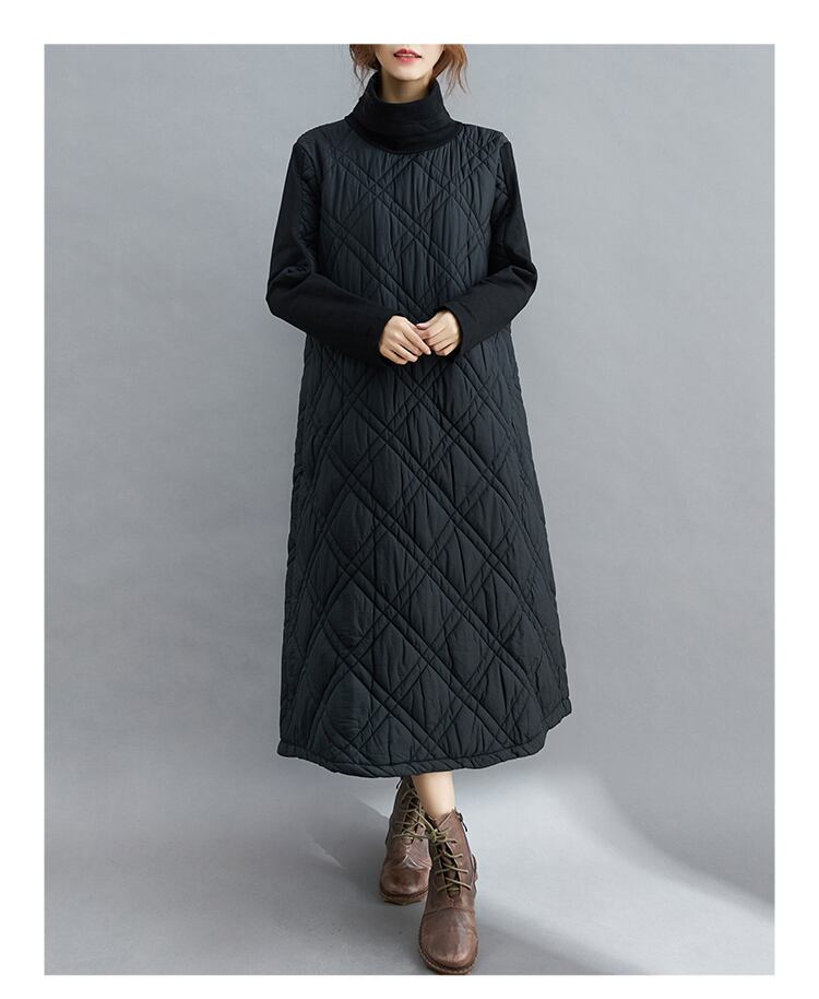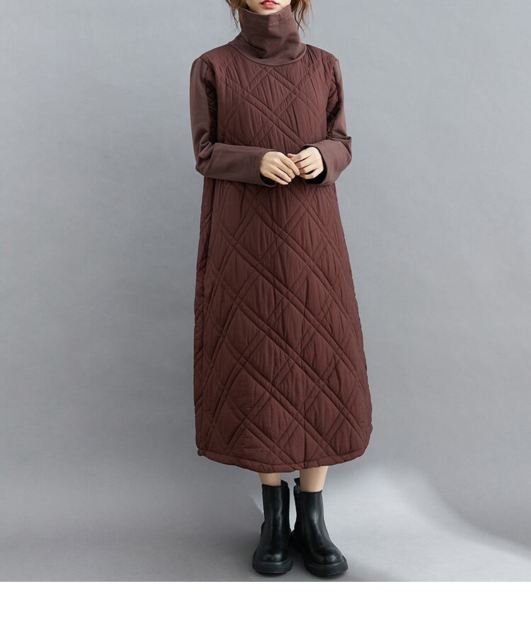 キルティング素材 ワンピース ロングスカート マキシ丈 袖あり 長袖 ハイネック ストレート ワイド Iライン 切り替えデザイン もこもこ 編み込み キルティング 厚手 きれいめ シンプル カジュアル 大人 上品 お洒落 レトロ こなれ感 ラフ 個性的 柄 冬 クリスマス バレンタイン 20代 30代 デート お出かけ 女子会 旅行 高原 普段使い 楽ちん 暖かい 防寒 体系カバー M L XL 2XL ゆったり ブラック ブラウン | Bonny Me
