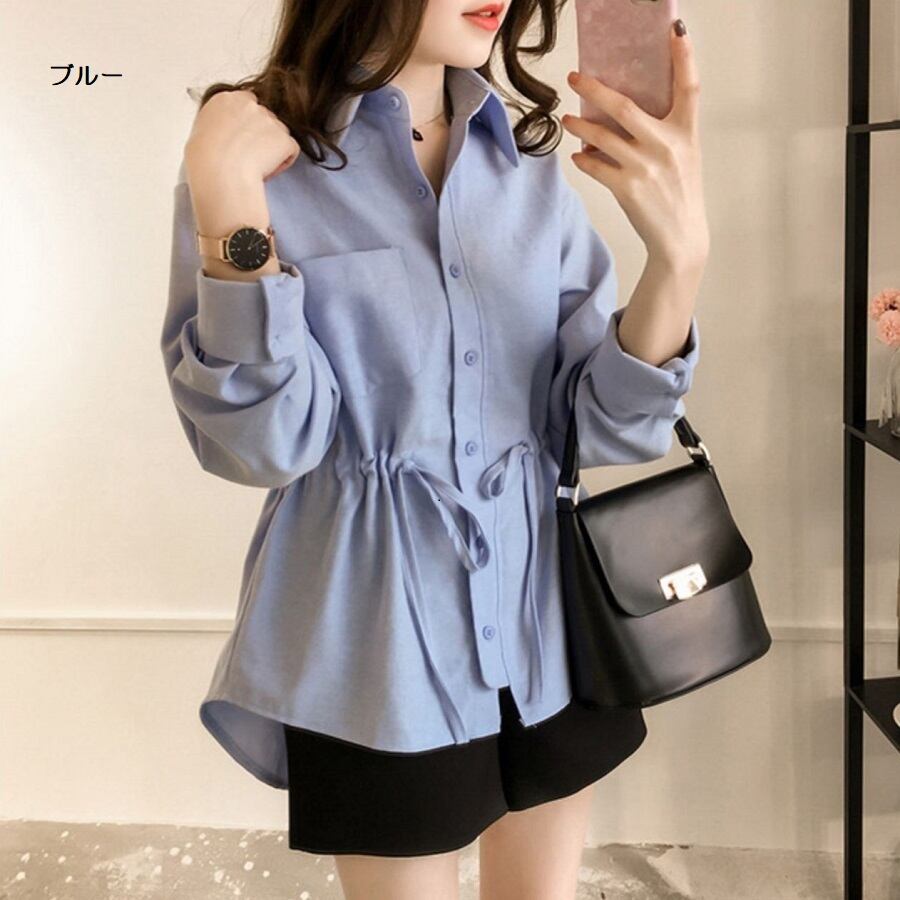 トップス ビッグサイズシャツ ドロスト ウェスト紐調節 バックロング ボタン シングル ストリート レトロ シャツスリーブ ミドルロング丈 POLOカラー 女らしさ 早秋 長袖 カジュアル おしゃれ ゆったり 着やすい ラフ ポケット 好印象 大人女子 大人っぽい 10代 20代 30代 通勤 通学 学生 OL オフィスコーデ モテコーデ 細見え スマート見え キレイ見え スッキリ見え 体型カバー 華奢見え ヤセ見え サマ見え こなれ感 M L XL 2XL 3XL 4XL ブルー グレー | Bonny Me