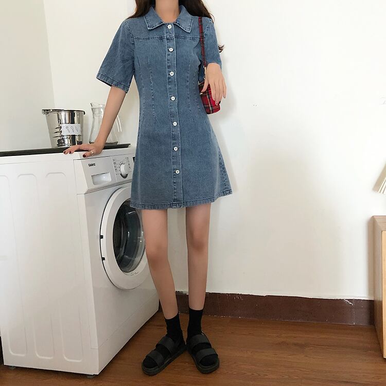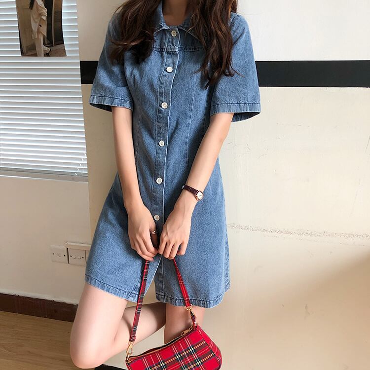 ワンピース シャツワンピース デニムワンピース ミニ ミニ丈 ショート ショート丈 袖あり 半袖 5分袖 五分袖 Vネック 襟付き 前開き デニム ブルーデニム かわいい 大人可愛い きれいめ シンプル カジュアル おしゃれ こなれ感 ラフ マニッシュ ボーイッシュ ラブリー キュート ガーリー 無地 夏 10代 20代 30代 40代 50代 60代 レディース 女性用 ママ お出かけ 休日 着回し 普段使い 重ね着 お揃い 双子 モテ インスタ映え サイズ S M L 色展開 青 ブルー | Bonny Me