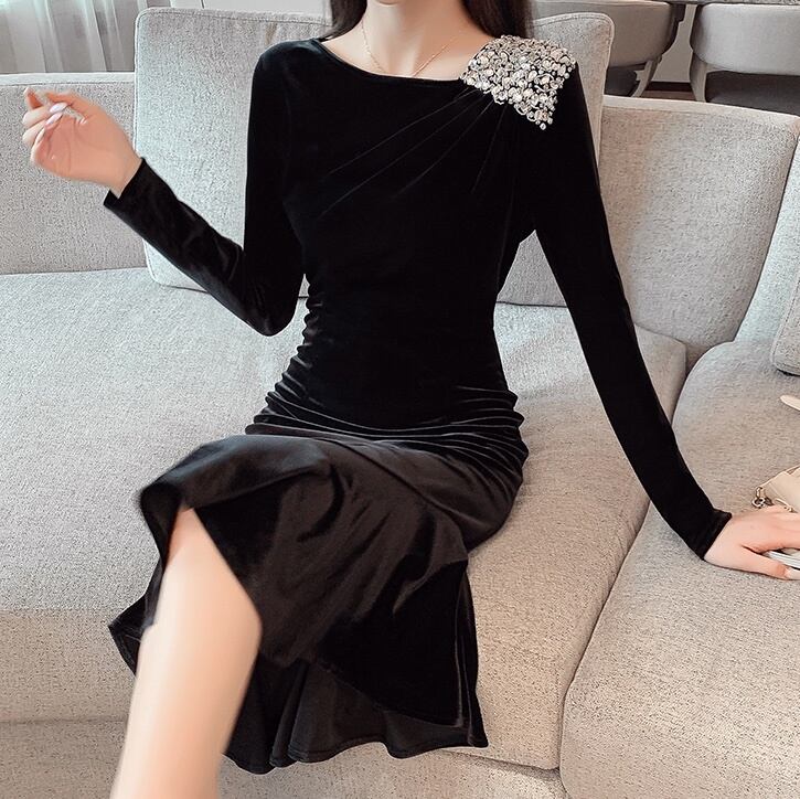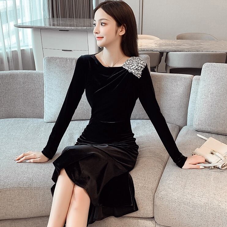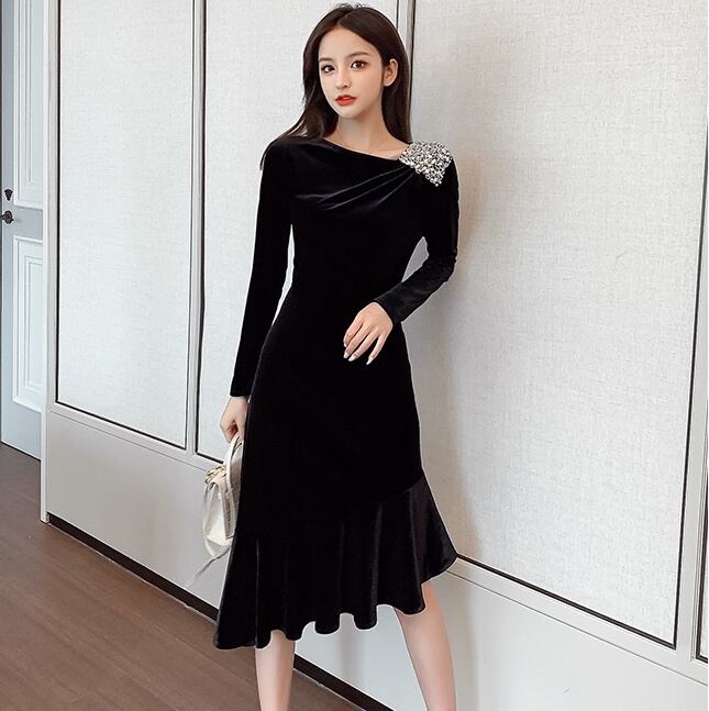 ワンピース ミモレ ミモレ丈 袖あり 長袖 スクエアネック Aライン アシンメトリー 切り替えデザイン ウエストマーク ベロア ベルベット かわいい 大人可愛い きれいめ 上品 おしゃれ お洒落 フォーマル エレガント 大人 上品 主役級 存在感 クラシック ラブリー キュート ガーリー 無地 10代 20代 30代 40代 50代 60代 レディース 女性用 お出かけ パーティー イベント インスタ映え 秋 冬 二次会 2次会 お呼ばれ S M L XL 2XL 大きいサイズ 色展開 黒 ブラック | Bonny Me