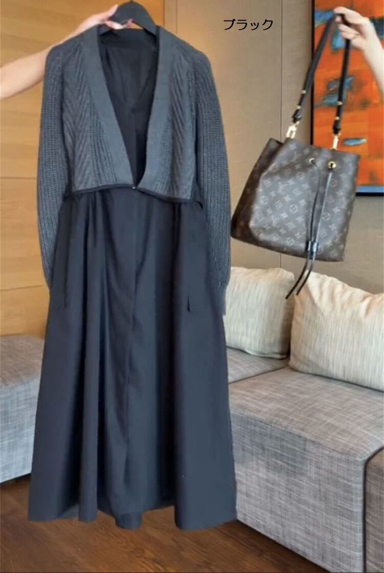 ワンピース フェイクドレス ニットベスト ボレロ タックギャザー レトロ ニットカーディガン ニット生地 Aラインスカート フェアリー ハイウエスト ビッグフレア ミドルロング丈 ゆったり 長袖 シック 大人女子 エレガント レディース スマート スッキリ見え カジュアル おしゃれ 好印象 韓国 細見え スマート見え キレイ見え スッキリ見え 体型カバー 華奢見え ヤセ見え サマ見え こなれ感 S M L XL 2XL ブラック カーキ | Bonny Me
