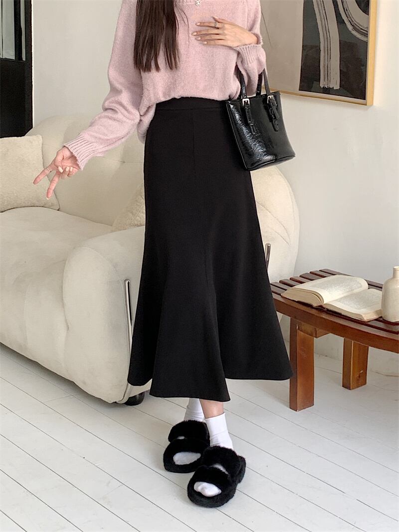 スカート ボトムス マーメイドスカート ミモレ ミモレ丈 ロング ロング丈 セミフレア マーメイド ハイウエスト かわいい 大人可愛い シンプル カジュアル おしゃれ お洒落 大人女子 こなれ感 ラフ ガーリー 主役級 存在感 抜け感 無地 秋 冬 10代 20代 30代 40代 レディース 女性用 デート お出かけ 女子会 休日 ホテル レストラン 着回し 普段使い 韓国系 オルチャン ファッション コーデ スタイル 体系カバー 脚長 S M L XL ブラウン ブラック | Bonny Me