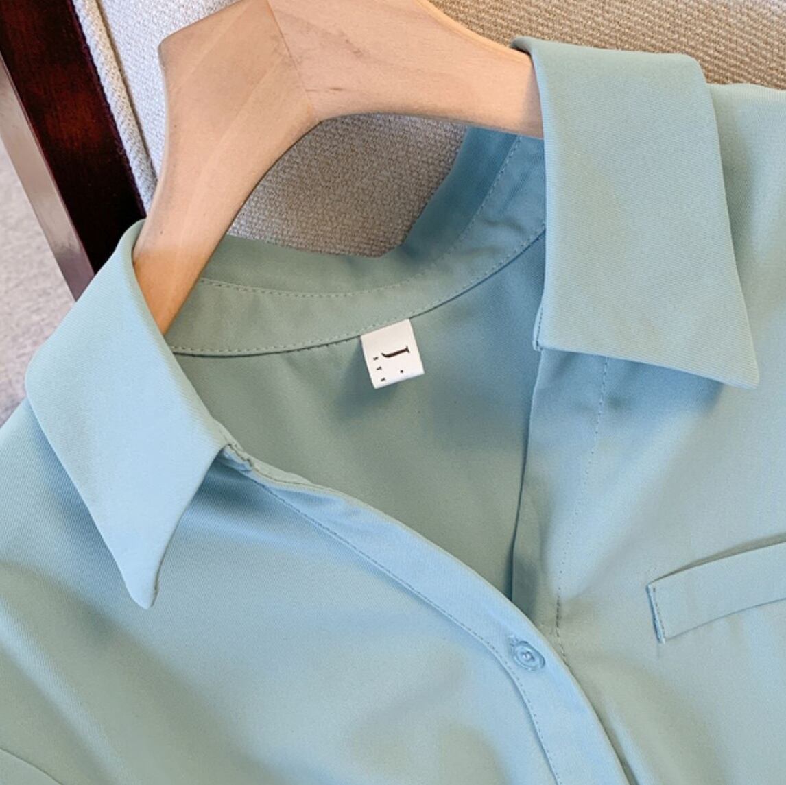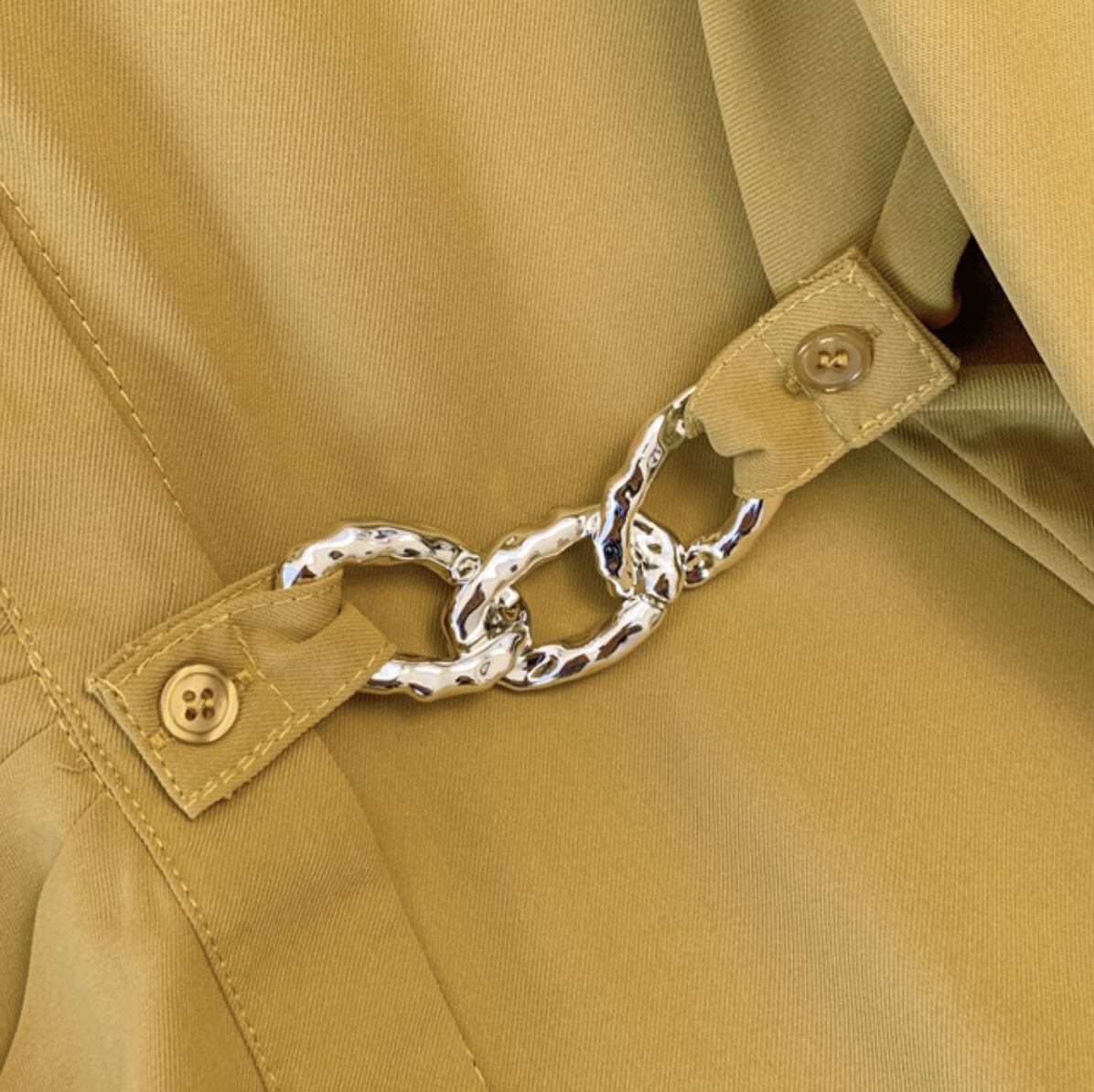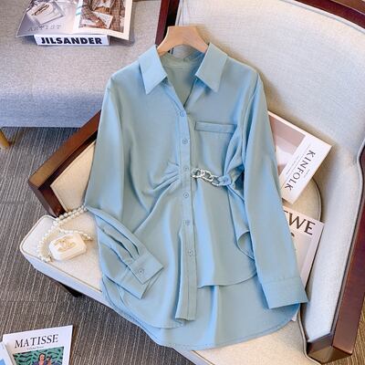 フロントチェーンがおしゃれな長袖ブラウス。