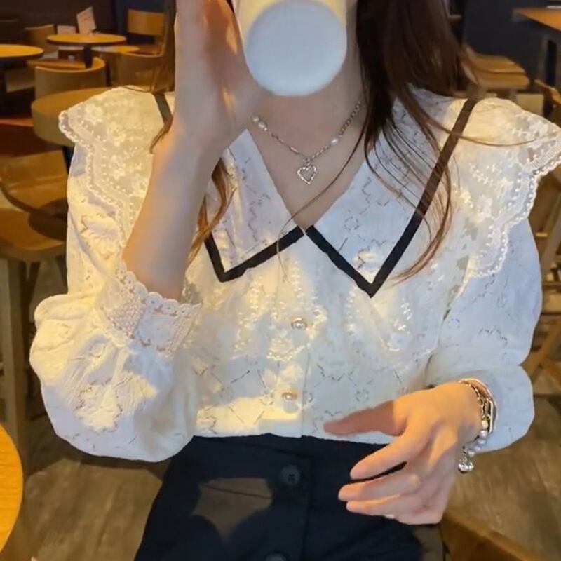 トップス シャツ ブラウス 袖あり 長袖 Vネック 襟付き レース 刺繍 シフォン かわいい 大人可愛い おしゃれ お洒落 レトロ 大人女子 こなれ感 ラブリー キュート ガーリー エレガント 主役級 存在感 フォーマル 春 秋 10代 20代 30代 40代 50代 60代 レディース 女性用 ママ お出かけ 休日 パーティー イベント 着回し 普段使い 重ね着 お揃い 双子 モテ インスタ映え サイズ S M L XL 2XL 小さいサイズ 大きいサイズ 色展開 白 ホワイト | Bonny Me