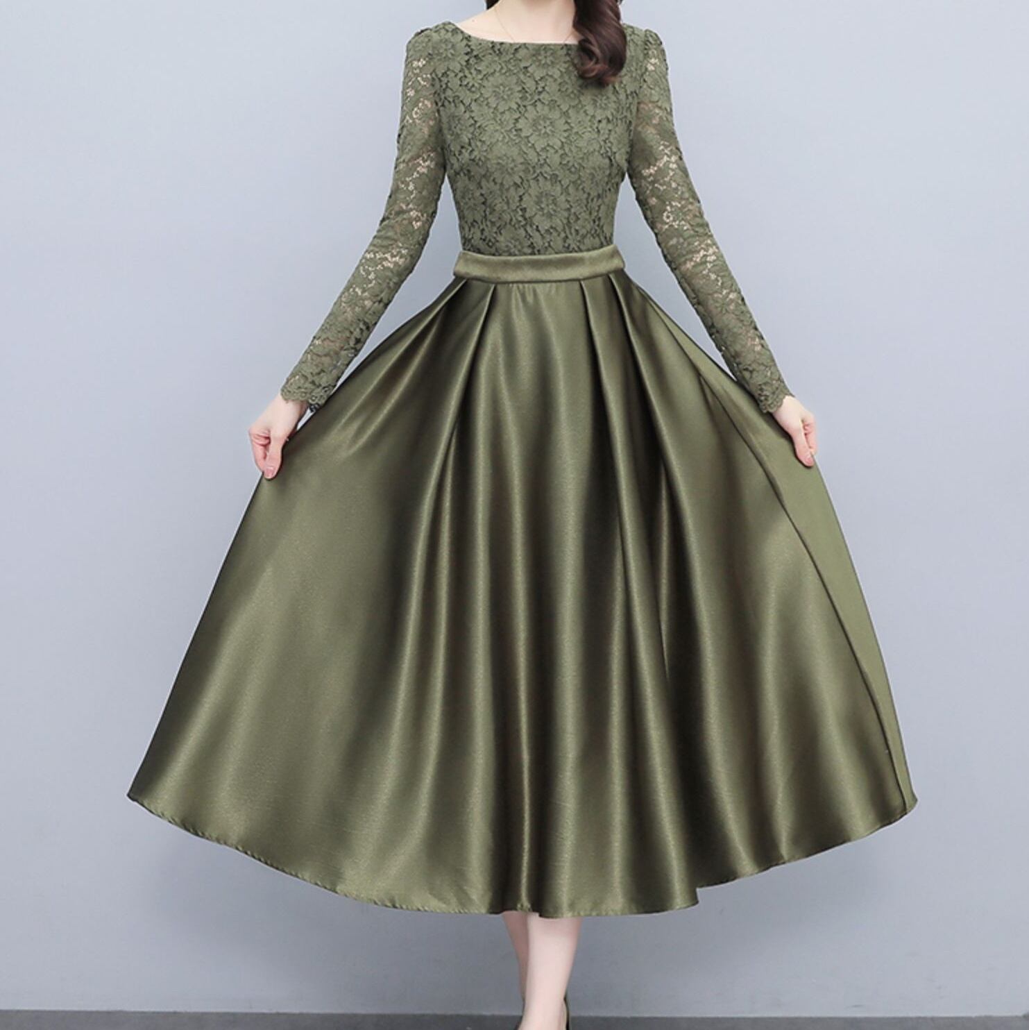 ドレス ワンピース ミモレ ミモレ丈 ロング ロング丈 袖あり 長袖 スクエアネック Aライン 切り替えデザイン 刺繍 ウエストマーク ハイウエスト かわいい 大人可愛い きれいめ 上品 おしゃれ お洒落 フォーマル エレガント 大人 上品 主役級 存在感10代 20代 30代 40代 50代 60代 レディース 女性用 お出かけ パーティー イベント 高見え 格上げ インスタ映え 秋 冬 お呼ばれ S M L XL 2XL 3XL 小さいサイズ 大きいサイズ 色展開 黒 ブラック 緑 グリーン 光沢 | Bonny Me