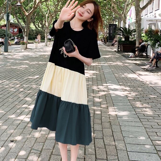 ワンピース フレアワンピース ミモレ ミモレ丈 袖あり 半袖 Uネック フレア 切り替えデザイン ドッキング かわいい 大人可愛い カジュアル おしゃれ お洒落 かっこいい レトロ キュート 無地 夏 10代 20代 30代 40代 50代 60代 レディース 女性用 ママ マタニティ お出かけ 休日 着回し 普段使い 楽ちん モテ 体形カバー インスタ映え サイズ L XL 2XL 3XL 4XL 大きいサイズ 大きい 大きめ 色展開 白 ホワイト 黒 ブラック 赤 レッド 緑 グリーン | Bonny Me