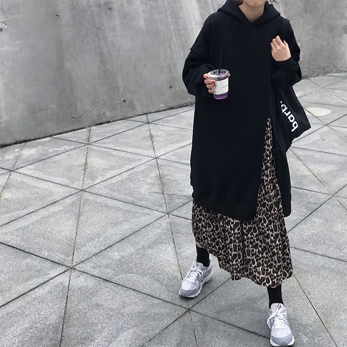 ワンピース プルオーバー ミモレ丈 ロング丈 長袖 ドロップショルダー 萌袖 セミフレア Aライン スリット サイドスリット 切り替えデザイン ドッキング かわいい 大人可愛い シンプル カジュアル おしゃれ お洒落 大人女子 こなれ感 ラフ ルーズ 主役級 存在感 抜け感 無地 柄 ヒョウ柄 春 秋 10代 20代 30代 レディース 女性用 デート お出かけ 女子会 休日 旅行 着回し 普段使い 韓国系 オルチャン ファッション 楽ちん 体系カバー フリーサイズ ゆったり ゆる ブラック グリーン
