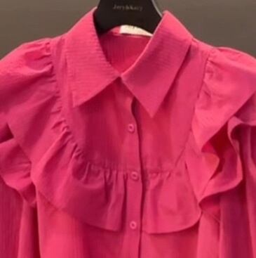 フリルがかわいいビビッドカラーの長袖シャツ。