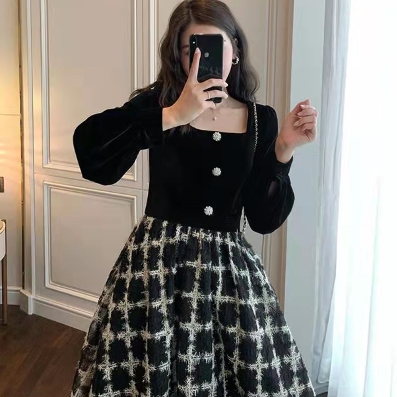 ワンピース フレアワンピース ミモレ ミモレ丈 袖あり 長袖 スクエアネック フレア かわいい 大人可愛い きれいめ 大人 上品 おしゃれ レトロ ラブリー キュート ガーリー チェック柄 格子柄 秋 冬 10代 20代 30代 40代 50代 60代 レディース 女性用 ママ お出かけ 休日 着回し 普段使い 重ね着 モテ 体形カバー トレンド 流行 インスタ映え サイズ L XL 2XL 3XL 4XL 小さいサイズ 大きいサイズ 大きい 大きめ ビッグサイズ ゆる 色展開 白 ホワイト黒 ブラック | Bonny Me