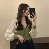 個性的 トップス Tシャツ シャツ 袖あり 長袖 ボリューム袖 スクエアネック 細身 切り替えデザイン 透け感 シースルー かわいい 大人可愛い きれいめ おしゃれ こなれ感 ラフ ラブリー キュート 個性的 とろみ感 抜け感 無地 オールシーズン 10代 20代 30代 通勤 デート お出かけ 旅行 着回し 普段使い 重ね着 韓国系 楽ちん モテ 体系カバー S M L XL ブラック カーキ | Bonny Me