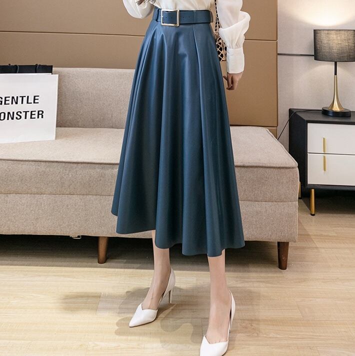 スカート ボトムス ロングスカート フレアスカート ミモレ ミモレ丈 ロング ロング丈 フレア ベルト ハイウエスト レザー おしゃれ お洒落 かっこいい 大人女子 クール モード系 セクシー エレガント 無地 秋 冬 10代 20代 30代 40代 50代 60代 レディース 女性用 ママ お出かけ 休日 着回し 普段使い 重ね着 お揃い 双子 モテ インスタ映え サイズ S M L XL 小さいサイズ 大きいサイズ 色展開 黒 ブラック 青 ブルー 茶色 ブラウン 秋カラー カラバリ | Bonny Me