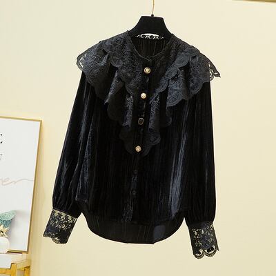 トップス シャツ ブラウス 袖あり 長袖 Uネック レース 刺繍 フリル かわいい 大人可愛い きれいめ 大人 上品 おしゃれ お洒落 レトロ 大人女子 ラブリー キュート ガーリー 抜け感 春 秋 10代 20代 30代 40代 50代 60代 レディース 女性用 ママ お出かけ 休日 着回し 普段使い 重ね着 モテ インスタ映え サイズ L XL 2XL 3XL 4XL 小さいサイズ 大きいサイズ 大きい 大きめ ビッグサイズ ゆる 色展開 白 ホワイト 黒 ブラック カラバリ | Bonny Me