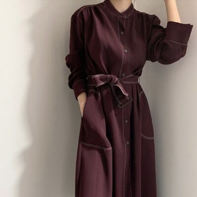 ワンピース シャツワンピース ミモレ ミモレ丈 ロング ロング丈 袖あり 長袖 Vネック 襟付き ベルト ウエストマーク 前開き 2way きれいめ シンプル カジュアル 大人 上品 おしゃれ お洒落 かっこいい 大人女子 ラフ マニッシュ 無地 春 秋 10代 20代 30代 40代 50代 60代 レディース 女性用 ママ お出かけ 休日 高原 ガーデンショッピング 着回し 普段使い 重ね着 プレゼント ギフト サイズ S M L 小さいサイズ 大きいサイズ 色展開 赤 レッド 青 ブルー | Bonny Me