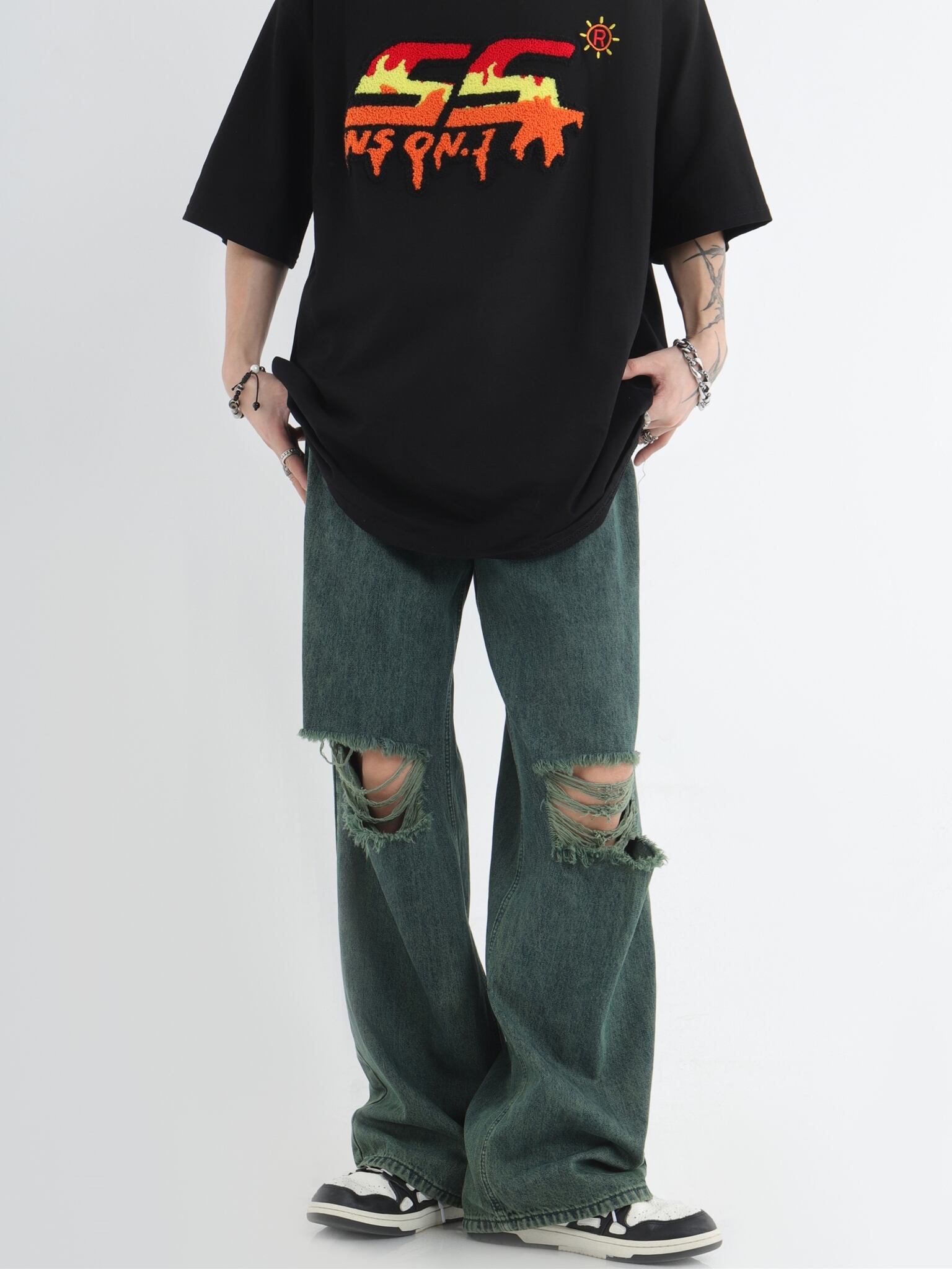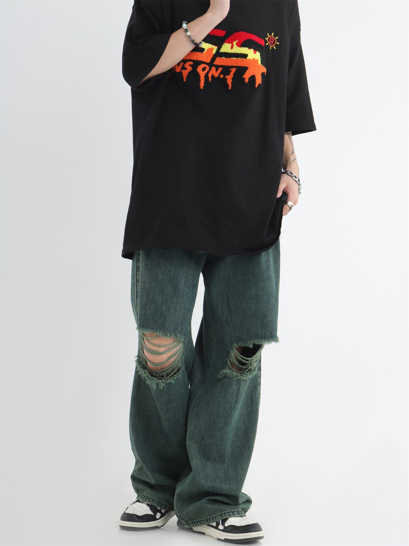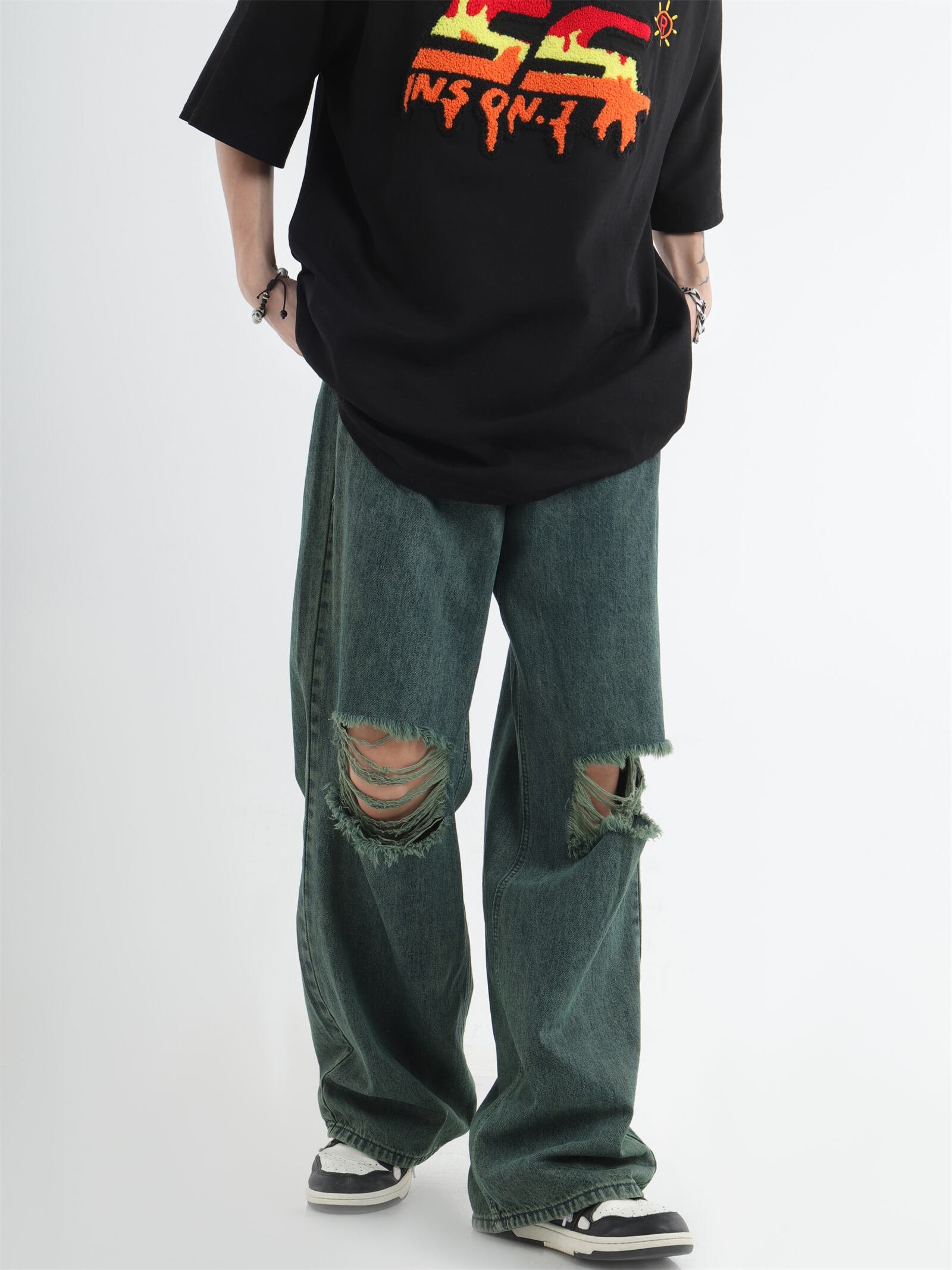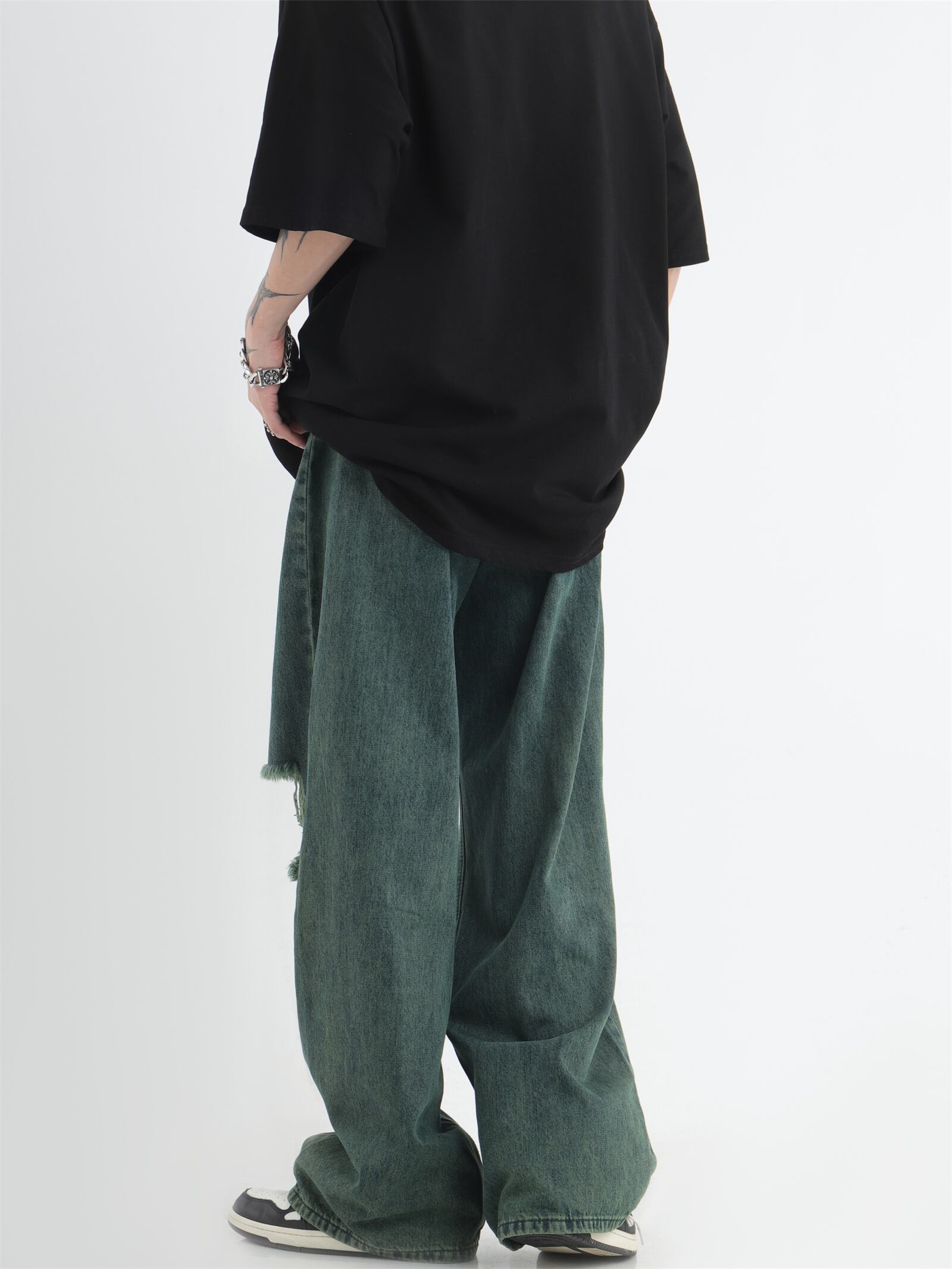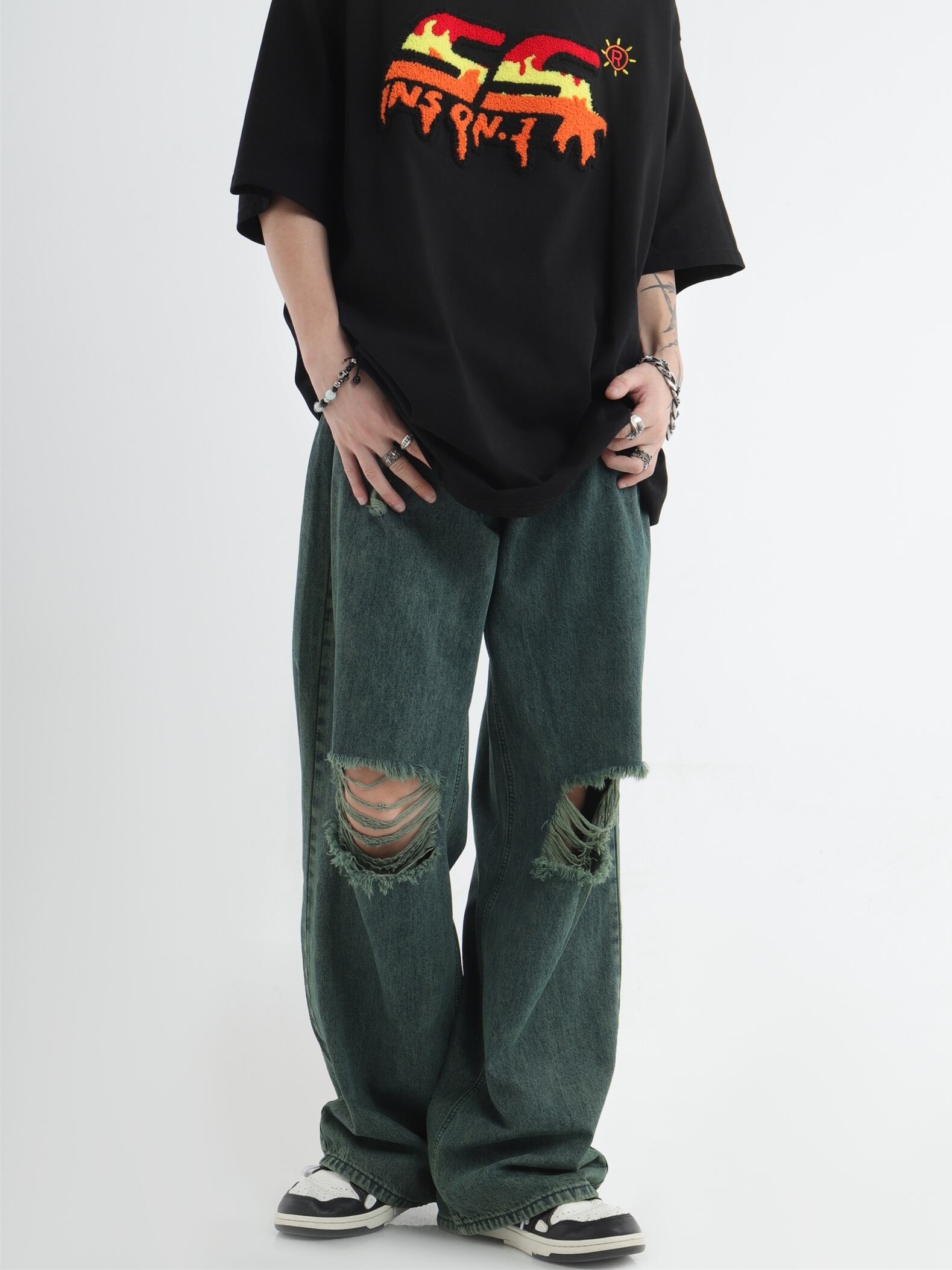 個性的 パンツ ズボン ロング丈 ストレート ワイド ファスナー ポケット 薄手 シンプル カジュアル 大人 おしゃれ かっこいい レトロ こなれ感 ラフ メンズライク ボーイッシュ ルーズ 個性的 クール モード系 無地 オールシーズン 10代 20代 30代 デート お出かけ 公園デビュー 着回し 普段使い 楽ちん ダメージ 穴あき 体系カバー S M L XL 2XL 大きめ ゆったり ゆる 深緑 | Bonny Me