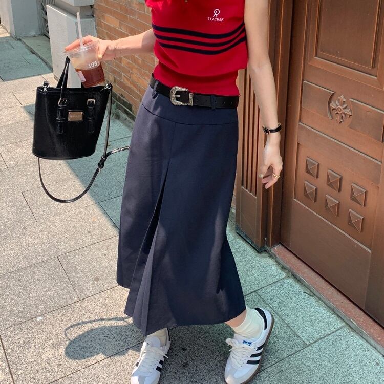 スカート プリーツスカート ロング丈 2WAY 女子大学風 ハイウエスト Aライン 秋 無地 薄い レディース ファッショナブル シック 大人っぽい 履きやすい 動きやすい エレガント 好印象 モテコーデ 着やすい おしゃれ 10代 20代 30代 大人かわいい 韓国 OL 学生 通勤 通学 スッキリ見え 休日 着回し スマート見え キレイ見え 足長見え 足長効果 細見え 体型カバー 華奢見え ヤセ見え サマ見え こなれ感 S M L カーキ ホワイト グレー ダークブルー | Bonny Me