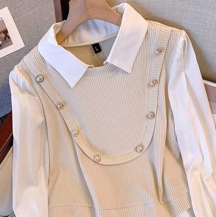 トップス シャツ ブラウス 袖あり 長袖 Vネック 襟付き 切り替えデザイン ドッキング かわいい 大人可愛い きれいめ シンプル カジュアル おしゃれ お洒落 かっこいい ラブリー キュート ガーリー 無地 春 秋 10代 20代 30代 40代 50代 60代 レディース 女性用 ママ お出かけ 休日 着回し 普段使い 重ね着 モテ 体形カバー インスタ映え サイズ L XL 2XL 3XL 4XL 大きいサイズ 大きい 大きめ ビッグサイズ ゆる 色展開 白 ホワイト 黒 ブラック カラバリ | Bonny Me