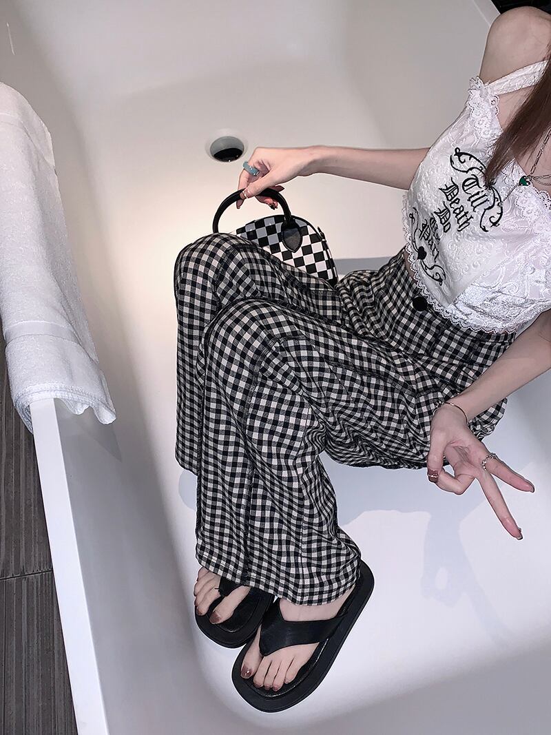 ハイウエスト ボトムス パンツ ワイドパンツ ロング丈 ストレート ワイド ハイウエスト 薄手 かわいい 大人可愛い シンプル カジュアル 大人 おしゃれ かっこいい レトロ 大人可愛い 大人女子 こなれ感 ラフ ボーイッシュ ラブリー キュート ガーリー モード系 抜け感 格子柄 オールシーズン クリスマス バレンタイン 10代 20代 30代 通勤 デート お出かけ 女子会 旅行 ガーデン レストラン 着回し 普段使い 重ね着 楽ちん モテ 体系カバー 脚長 S M L 白 黒 | Bonny Me