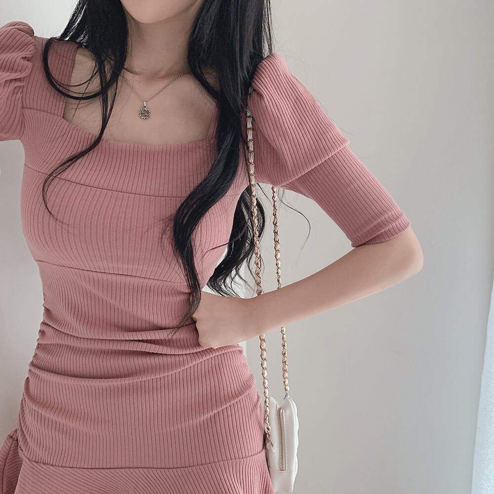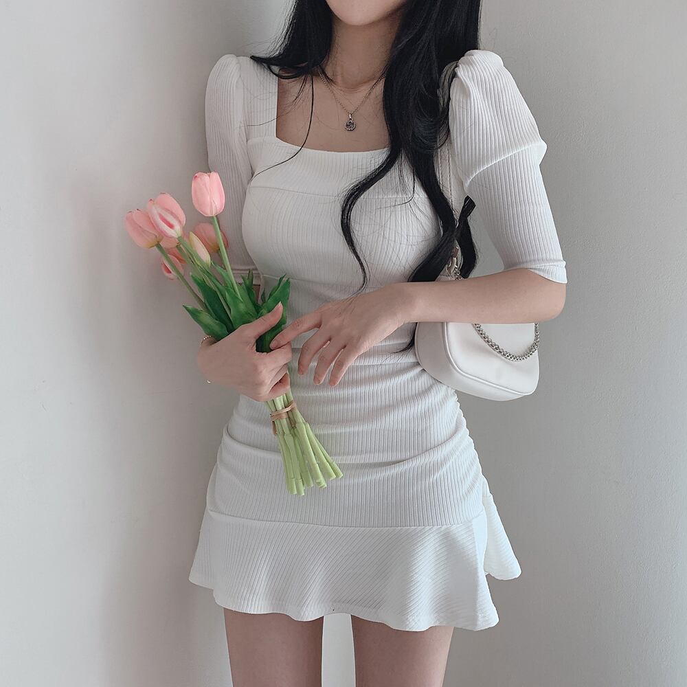 ワンピース ワンピドレス ミニ ミニ丈 ショート ショート丈 袖あり 5分袖 五分袖 7分袖 七分袖 スクエアネック スリム タイト 細身 かわいい 大人可愛い おしゃれ お洒落 こなれ感 ラフ ラブリー キュート ガーリー セクシー 無地 春 夏 秋 10代 20代 30代 40代 50代 60代 レディース 女性用 ママ お出かけ 休日 着回し 普段使い 重ね着 お揃い 双子 モテ インスタ映え サイズ フリーサイズ ワンサイズ 色展開 白 ホワイト 黒 ブラック 青 ブルー ピンク | Bonny Me