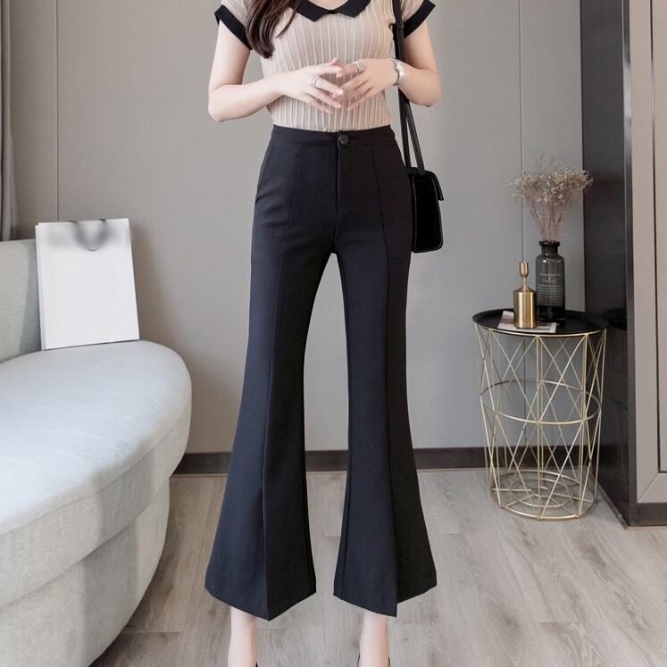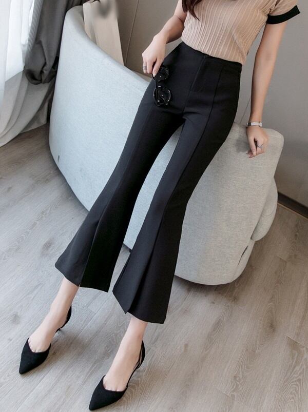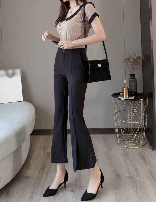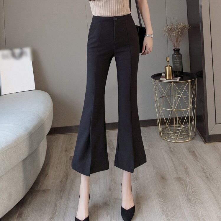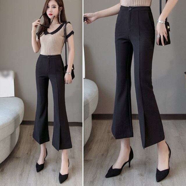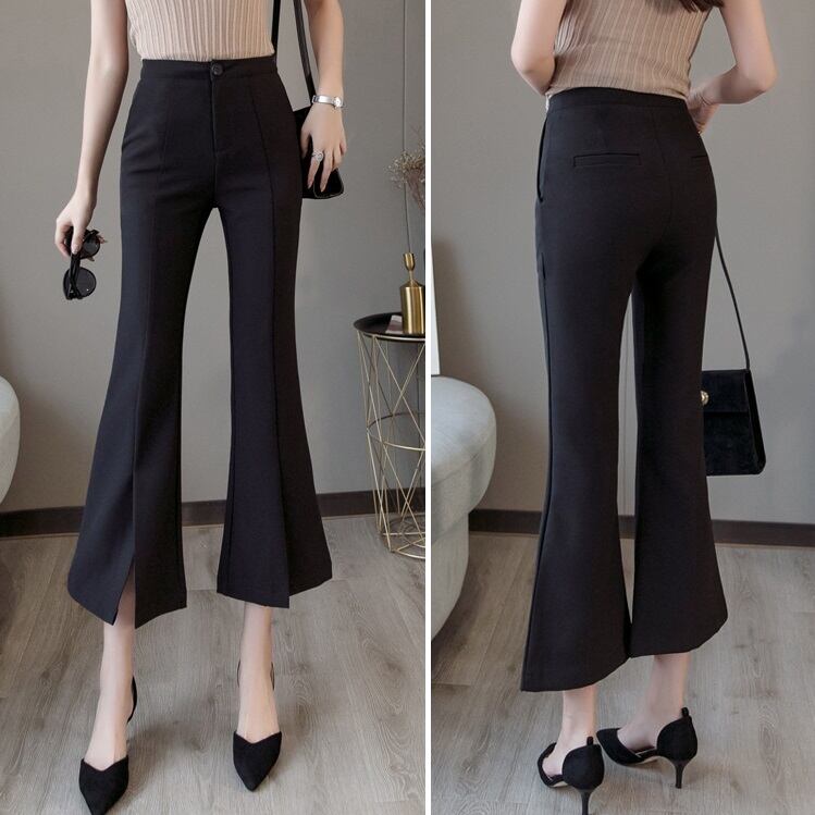 クロップドパンツ スリットフレアパンツ ハイウエスト レディース フレアパンツ カジュアル エレガント ボタン ファスナー ポケット 新作 春秋 薄い 細見え 足長見え スタイルUP かっこよさ カジュアル 30代 体型カバー レディース OL 学生 通勤 通学 おしゃれ スッキリ見え スマート見え キレイ見え 足長見え 足長効果 細見え 韓国 体型カバー 華奢見え ヤセ見え サマ見え こなれ感 S M L XL 2XL ブラック | Bonny Me